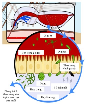 Hình 2. Chu trình phát triển Plasmodium bên trong muỗi [9]