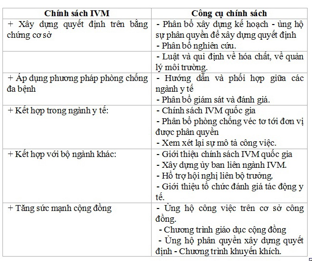 - Cần có chính sách rõ ràng cho những bước đầu chiến lược IVM, cũng như sự sắp xếp nhiệm vụ và vai trò của tổ chức và thành phần tham gia khác phải cụ thể.