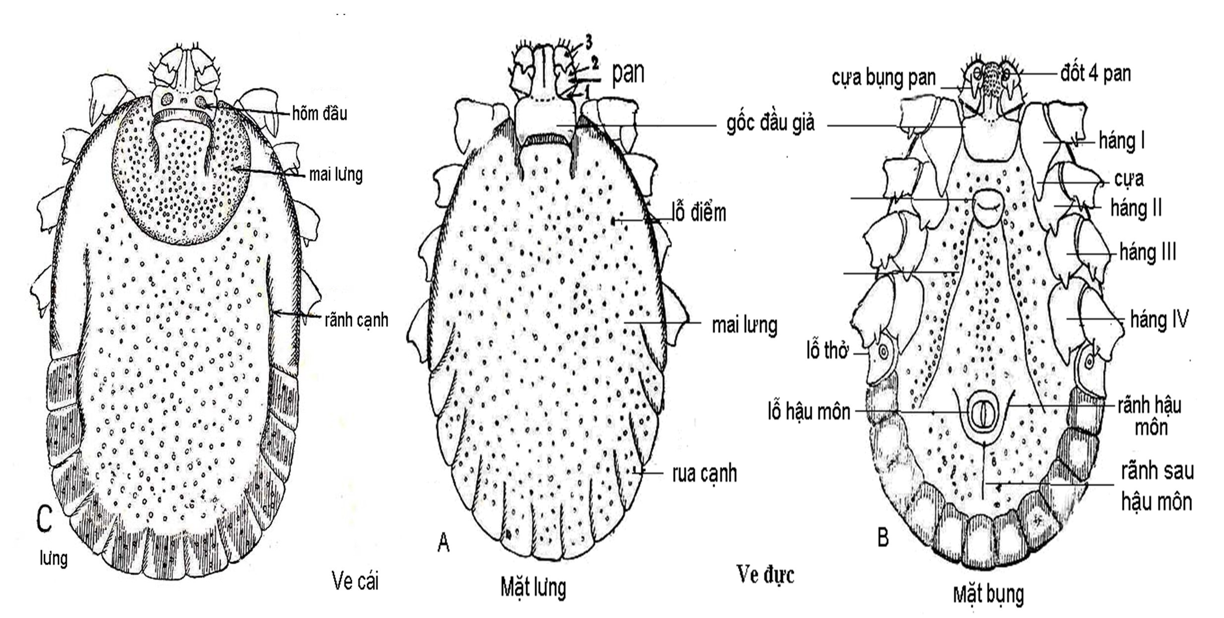 Hình 9.3. Hình thể của ấu trùng, thiếu trùng và ve trưởng thành[11]