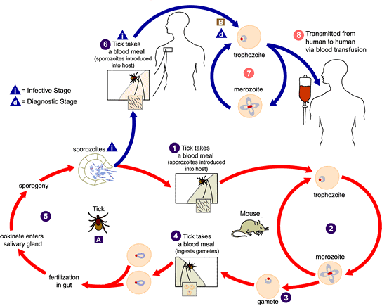 Mầm bệnh: Babesia là một ký sinh trùng đơn bào trong máu. Hiện có hơn 100 loài Babesia được xác định; Tuy nhiên, chỉ có một số ít được trình bày như là bệnh sinh ở người. Tại Mỹ, Babesia microti là dòng thường gặp nhất có liên quan đến người, trong khi các loài khác thì nhiễm trên gia súc, gia cầm và đôi khi lên các vật nuôi gia đình.