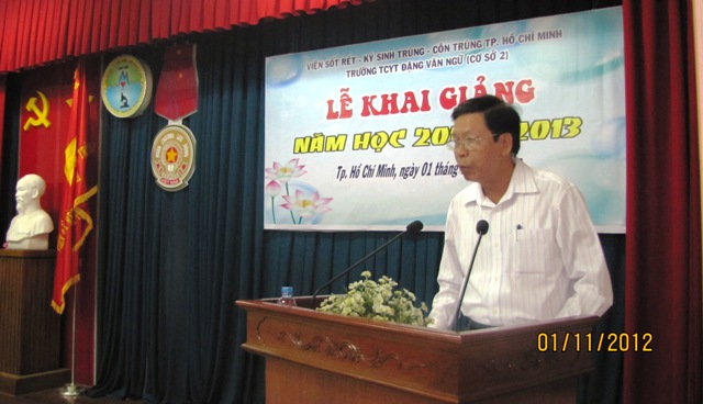 PGS.TS. Nguyễn Mạnh Hùng, Hiệu trưởng Trường TCYT Đặng Văn Ngữ phát biểu khai giảng năm học 2012 – 2013