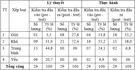 Kết quả cho thấy: sau thời gian tập huấn các học viên đã biết thêm nhiều về hình thể ký sinh trùng cũng như chu kỳ của KSTSR. Đã có sự cải thiện về mặt lý thuyết, tất cả đều đạt loại khá, giỏi. Kỹ năng thực hành soi lam phát hiện KSTSR cũng được nâng cao: học viên đạt loại khá chiếm 38%, loại giỏi 55,2%, không còn học viên xếp loại yếu.