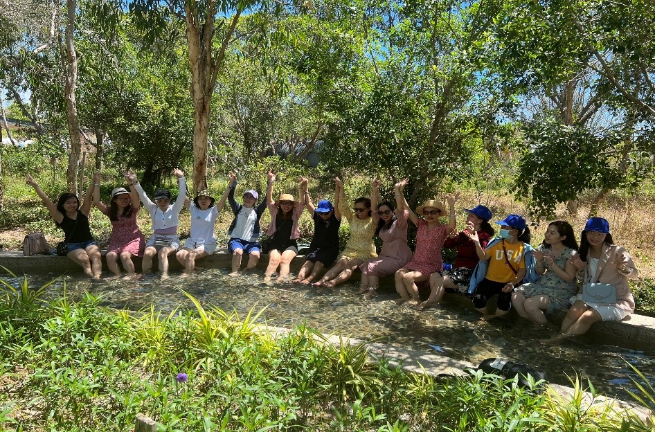 Khoảnh khắc vui thích nhất của mỗi người là được hòa mình vào biển với dòng nước biển trong xanh, một bãi biển “gây thương nhớ” với khung cảnh biển xanh - mây trắng - nắng vàng cực đẹp. Bên cạnh đó, cả đoàn còn được đến tham quan Công viên Rừng Minera Forest, tham quan và luộc trứng tại khu 82 Degrees, ngâm chân tại Khu Springs Land…