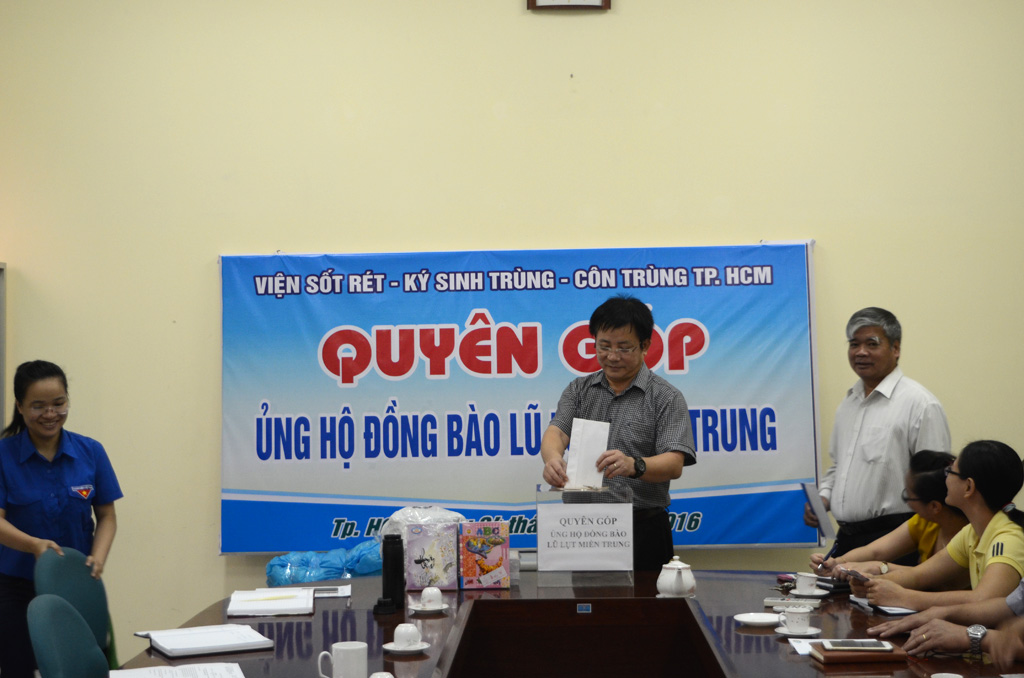 Phát huy truyền thống tương thân tương ái, kịp thời chia sẻ khó khăn với đồng bào bị ảnh hưởng bởi thiên tai, bão lũ, sáng ngày 24/10/2016, BCH Đảng bộ, BCH Công đoàn Viện Sốt rét - KST - CT TP. HCM đã phát động toàn thể CBVC-NLĐ dành ít ngày lương ủng hộ đồng bào các tỉnh miền Trung. Buổi quyên góp đã nhận được sự hưởng ứng tích cực của các tập thể khoa, phòng, trung tâm và CBVC-NLĐ Viện.