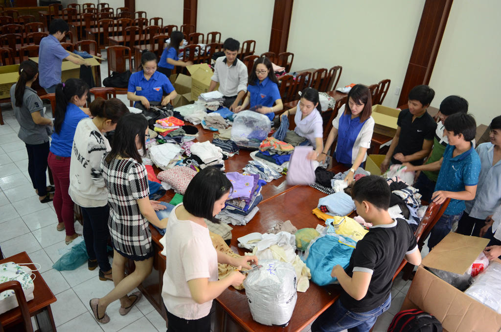 Đoàn thanh niên tổ chức đóng gói và vận chuyển quần áo, sách vở ủng hộ đồng bào miền Trung