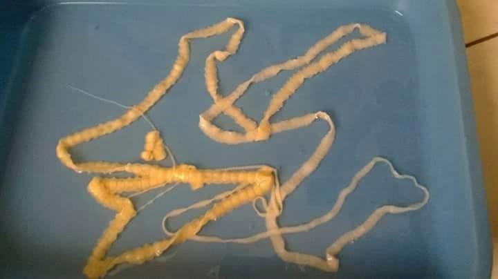 10:22 SA @ 23/09/2015Sổ thành công ca nhiễm sán dây ngày 7/9/15 tại Phòng khám bệnh chuyên khoa Ký Sinh trùng. Đốt sán bò ra hậu môn của bệnh nhânBệnh rận mu