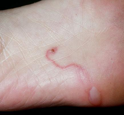 Bệnh ấu trùng da di chuyển là một bệnh nhiễm trùng da do ấu trùng giun móc từ mèo, chó và động vật khác. Con người có thể bị nhiễm ấu trùng qua chân trần khi đi bộ trên bãi cát hoặc tiếp xúc với đất bị ô nhiễm phân động vật. Ấu trùng di chuyển ký sinh dưới bề mặt da và đào hang biểu hiện màu đỏ, ngứa.