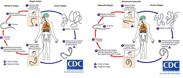 Chu kỳ phát triển của giun chỉ bạch huyết B.malayi và W.bancrofti (nguồn CDC)