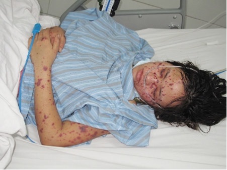 - Các dấu hiệu trên da: Ban xuất huyết hoại tử hình sao (tử ban) có đường kính 1-5mm xuất hiện sớm và lan nhanh, thường gặp ở hai chi dưới (tuy nhiên những tử ban này có thể kết thành đám)