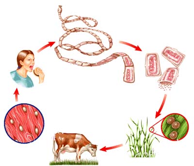 - Người ăn phải thịt lợn, thịt bò có ấu trùng sán (nang sán) chưa được nấu chín sẽ phát triển thành sán dây lợn/bò trưởng thành ký sinh ở ruột non của người.