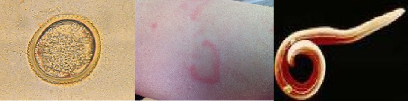 Hình ảnh: ấu trùng, ấu trùng dưới da người và giun đũa chó mèo
