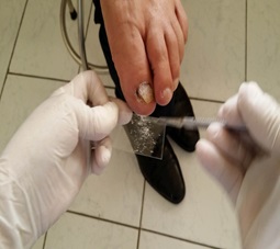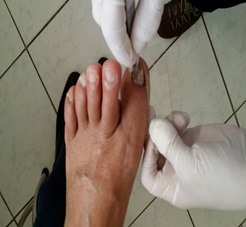 Hình 2: Lấy bệnh phẩm ở móng