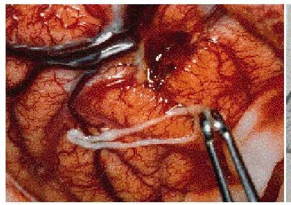 Hình 3: Sparganum được gắp ra từ vỏ não chẩm phải