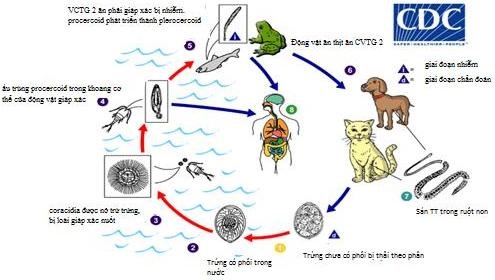 Hình 2:Chu trình phát triển củaSpirometra sp.(Nguồn CDC)