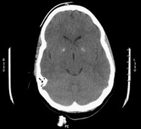 Hình 2: Chụp cắt lớp vi tính (CT) của đầu trẻ bị nhiễm HIV và viêm màng não do cryptococcus. Hiện có hai vôi hóa vân vân [6].