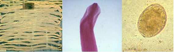 Hình 1:D. latumtrưởng thành (trái), đầu D. latum(giữa) và trứng (phải)