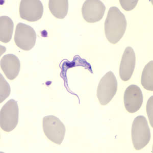 Thể trypomastigotes của Trypanosoma ssp trên lam máu nhuộm Giêmsa