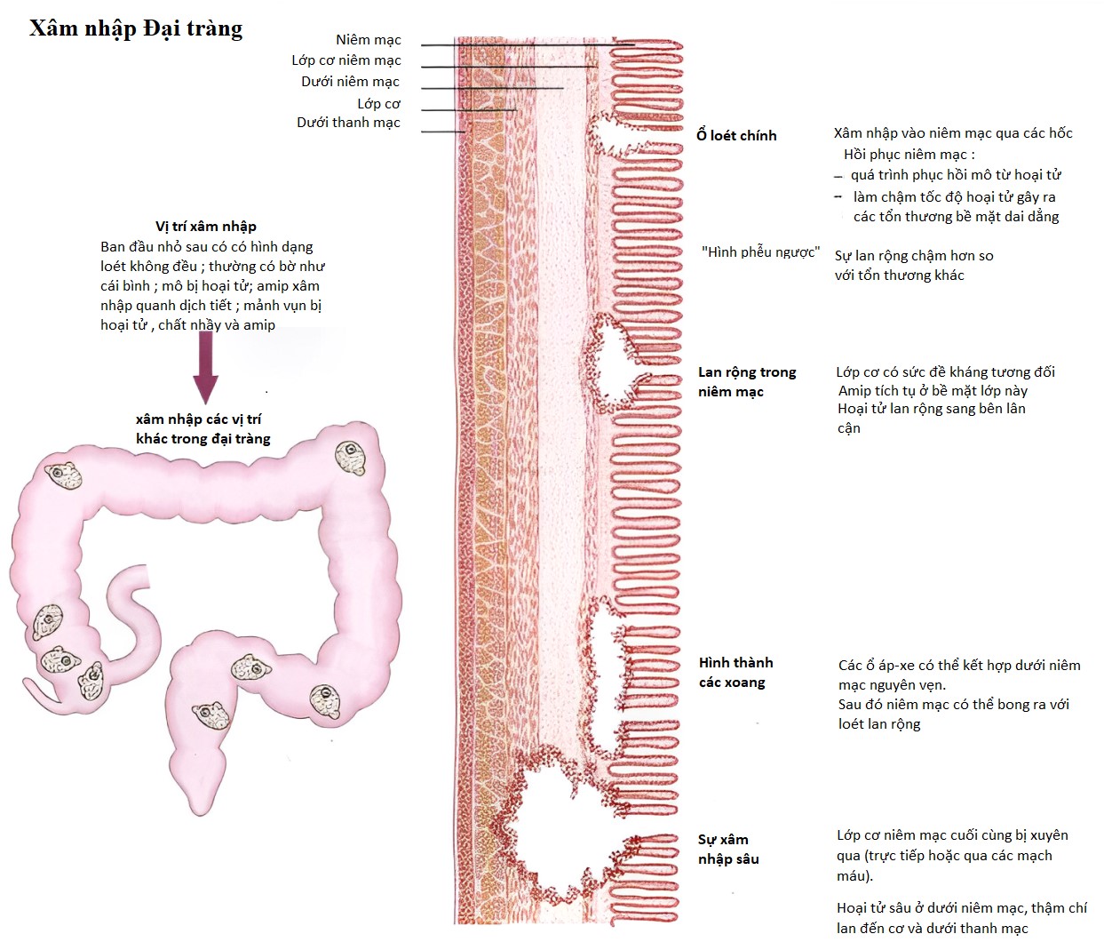 Hình ảnh mô tả E.histolytica xâm nhập đại tràng [7]