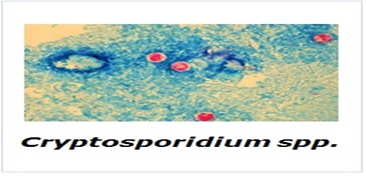 Cryptosporidium spp là một đơn bào ký sinh trong ruột của nhiều ký chủ khác nhau như động vật gặm nhấm, chim, cá, trâu, dê, heo, cừu, trong đó có con người. Người bị nhiễm là do uống nước, hít phải bào nang Cryptosporidium, ăn thức ăn chưa nấu chín hoặc các loại trái cây và rau quả để ăn sống chưa được rửa sạch có chứa bào nang Cryptosporidium. Sau khi vào ruột chúng gây đau bụng, tiêu chảy, mất nước, buồn nôn, sốt, giảm cân. Đối với những người có hệ miễn dịch suy yếu, các triệu chứng có thể nặng hơn, thậm chí đe dọa tới tính mạng [6].