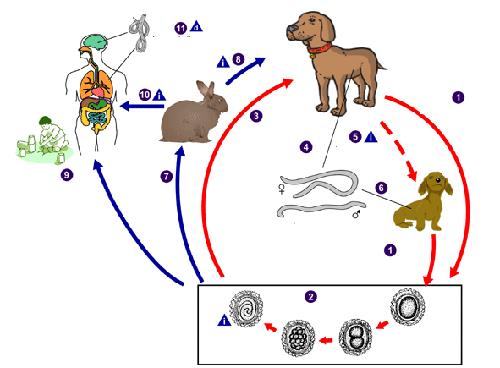 Người là vật chủ ngẫu nhiên, do nuốt phải trứng giun có trong đất hoặc nước bị nhiễm phân chó mèo hoặc nuốt phải ấu trùng giun khi ăn thịt chó mèo chưa nấu chín.