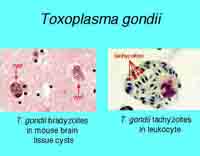 Người chỉ là ký chủ tình cờ của Toxoplasma gondii. Người bị nhiễm do nuốt phải trứng nang hoặc ăn phải nang giả có trong thịt chưa nấu chín, hoặc trong sữa, máu, nước tiểu của mèo bị nhiễm. Vào đến ruột của ký chủ, các thoa trùng trong trứng nang hoặc nang giả được phóng thích để đi ký sinh các tế bào thuộc hệ võng mô, não, cơ, trở thành những dạng hoạt động mới. Trong tế bào ký chủ, chúng tích cực sinh sản bằng cách phân đôi cho ra những thế hệ mới, làm tăng nhanh dân số, đi xâm chiếm tế bào mới, gây nên thể cấp tính. Giai đoạn này gây nguy hiểm cho thai nhi, nếu người mẹ bị nhiễm T. gondii.