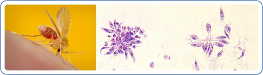 Hình 5: Muỗi cát và Leishmaniasis trên phết máu (https://www.cdc.gov/parasites/leishmaniasis/)