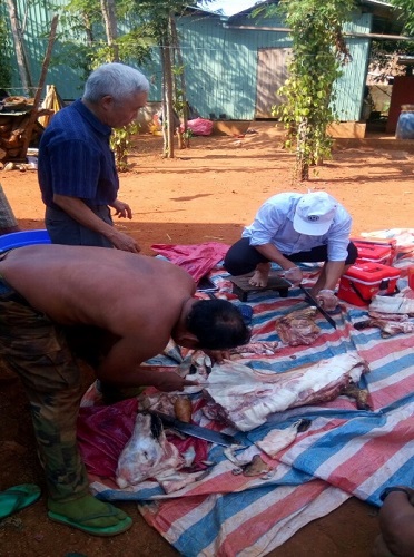 Theo thông báo từ người dân ở Thôn Bù Gia Phúc I, Xã Phú Nghĩa, Huyện Bù Gia Mập, Tỉnh Bình Phước, có trường hợp nghi ngờ lợn bị nhiễm ấu trùng sán dây (lợn gạo), Viện Sốt rét - Ký sinh trùng - Côn trùng TP. HCM đã cử ngay đoàn công tác đến địa phương để điều tra, thu thập mẫu thịt lợn nghi nhiễm bệnh để xét nghiệm, đồng thời qua kết quả xét nghiệm trên lợn sẽ chủ động tổ chức xét nghiệm ấu trùng bệnh lợn gạo cho nhân dân khu vực.