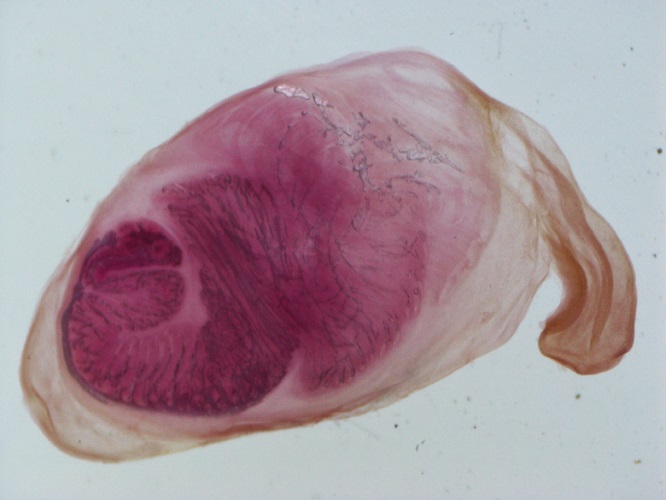 Ấu trùng sán dây lợn được nhuộm bằng carmen
