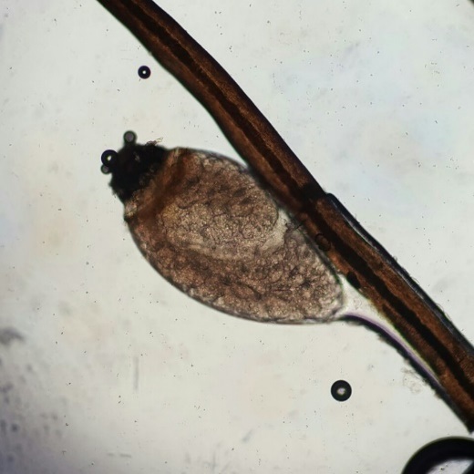Hình 2: Rận mu và trứng rận mu tìm thấy trên bệnh nhân khám tại Phòng khám bệnh Chuyên khoa Ký Sinh Trùng