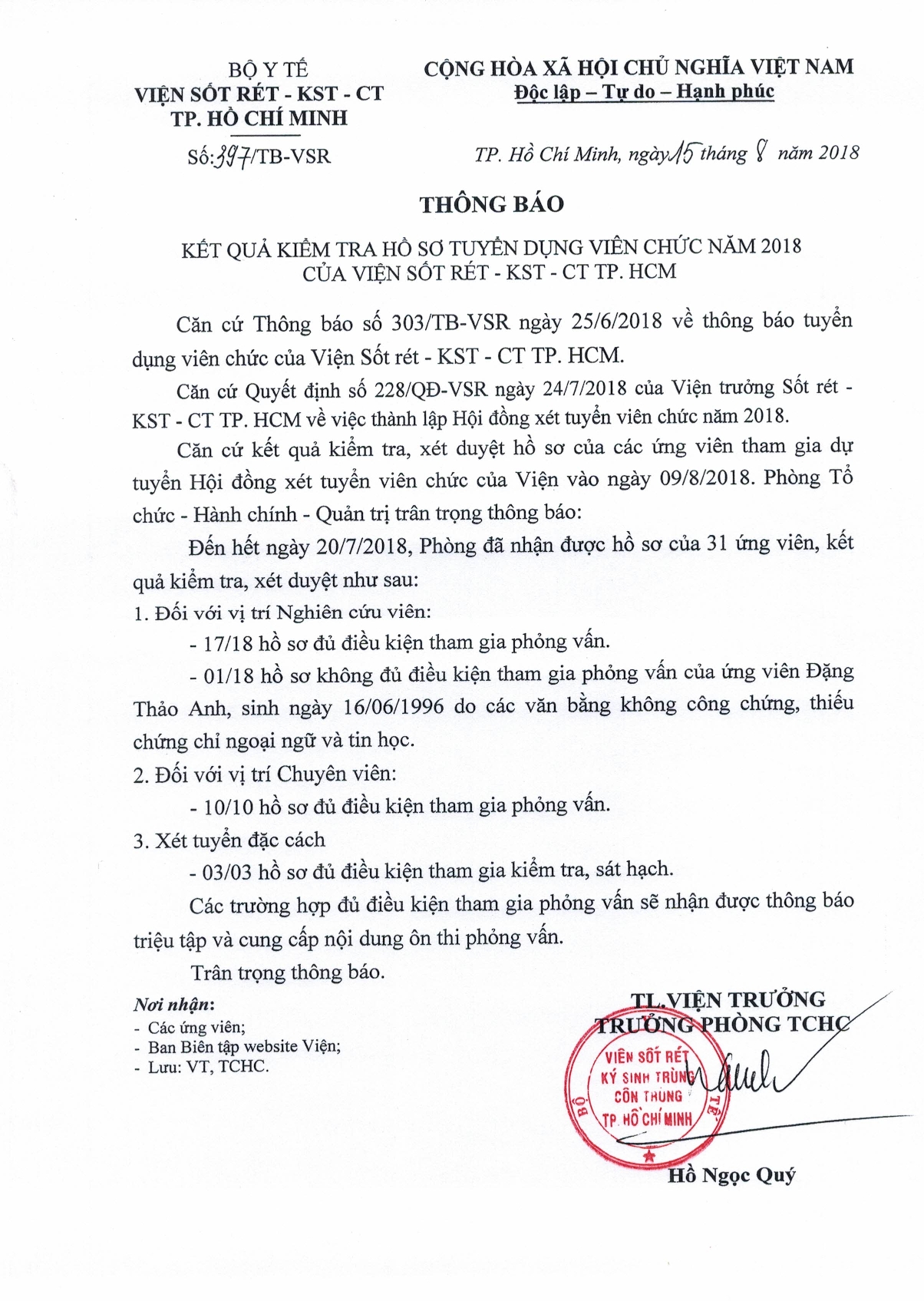 Thông báo kết quả kiểm tra hồ sơ tuyển dụng viên chức năm 2018