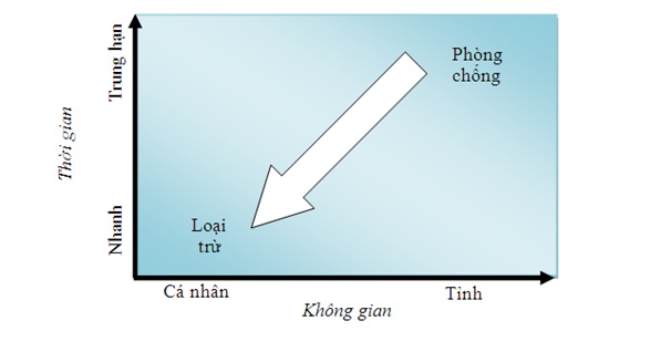 Hình 1: Những thay đổi về không gian và thời gian trong báo cáovà xử lý khi các nước tiến tới loại trừ sốt rét.