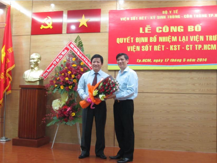 11:36 SA @ 27/05/2014Ngày 19/5/2014, các đơn vị Viện Sốt rét - KST - CT TP. HCM, Viện Kiểm nghiệm thuốc, KhoaLễ công bố Quyết định bổ nhiệm lại Viện trưởng Viện Sốt rét - KST - CT TP. HCM