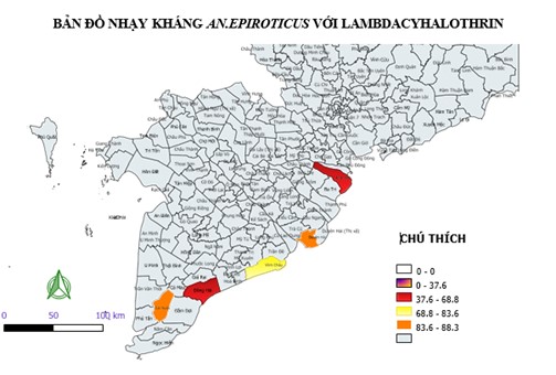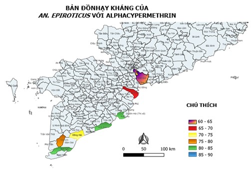 Khoa Côn trùng đã thu thập An. epiroticus tại các các tỉnh ven biển khu vực Nam Bộ – Lâm Đồng như: xã An Thới Đông, huyện Cần Giờ, Tp. HCM; xã Thạnh Phước, huyện Bình Đại, tỉnh Bến Tre; xã Vĩnh Tân, huyện Vĩnh Châu, tỉnh Sóc Trăng; xã Trần Thới, huyện Cái Nước, tỉnh Cà Mau; xã An Trạch, huyện Đông Hải, tỉnh Bạc Liêu và tiến hành thử nhạy kháng với hóa chất Alphacypermethrin. Kết quả thử nghiệm qua các năm 2012 - 2022 cho thấy tỷ lệ knock out sau 24 giờ của An. epiroticus thấp hơn 90%. Như vậy, An. epiroticus ở các tỉnh ven biển nước lợ miền Nam Việt Nam đã kháng với hóa chất Alphacypermethrin.