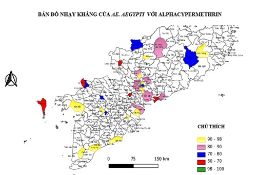Ae. aegypti được thu thập tại hầu hết các tỉnh khu vực Nam Bộ – Lâm Đồng và tiến hành thử nhạy kháng với hóa chất Alphacypermethrin. Kết quả thử nghiệm trong một thập kỉ qua (2012 – 2022) cho thấy tỷ lệ knock out sau 24 giờ của Ae. aegypti thấp hơn 85%. Vì vậy, Ae. aegypti ở các tỉnh Nam Bộ – Lâm Đồng đã kháng với hóa chất Alphacypermethrin.