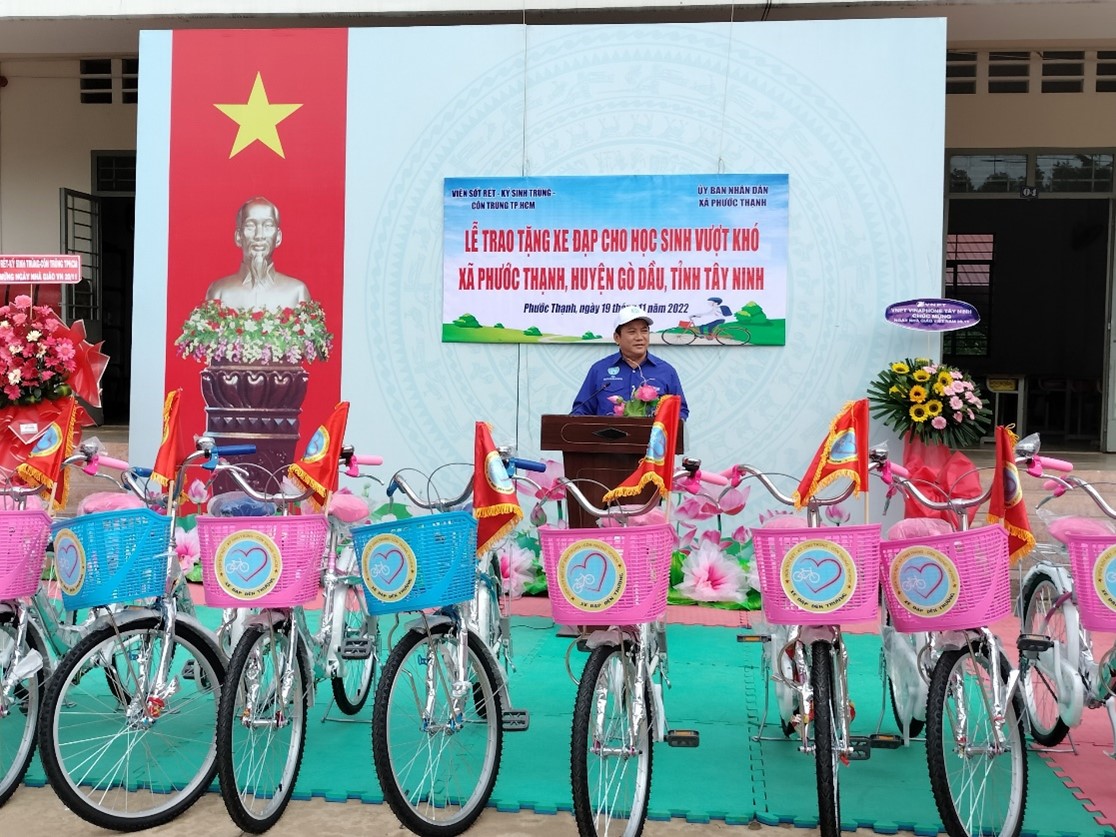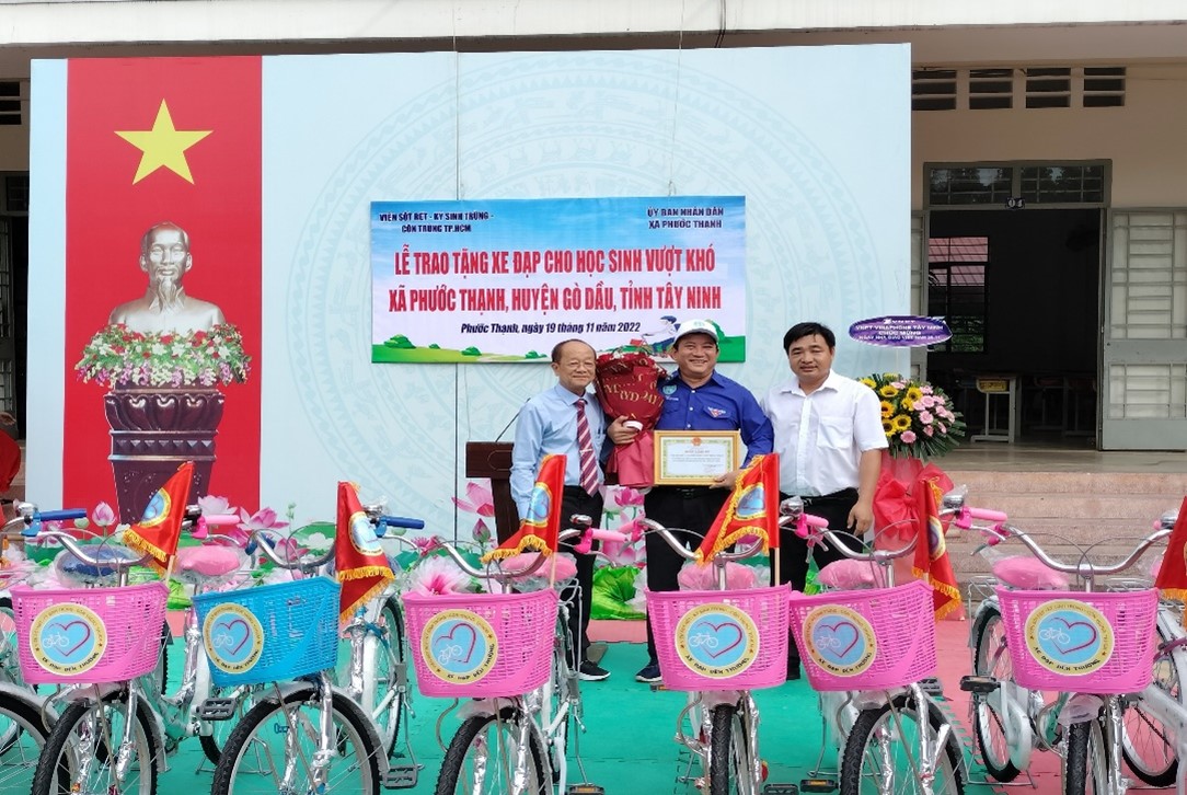 Thực hiện chuỗi hoạt động của Dự án “Quỹ xe đạp đến trường”, phát huy tinh thần tương thân tương ái, chăm lo cho thế hệ tương lai của đất nước, ngày 19/11/2022, Viện Sốt rét - Ký sinh trùng - Côn trùng TP. HCM đã tổ chức Lễ trao tặng xe đạp cho các em học sinh tại xã Phước Thạnh, huyện Gò Dầu, tỉnh Tây Ninh.