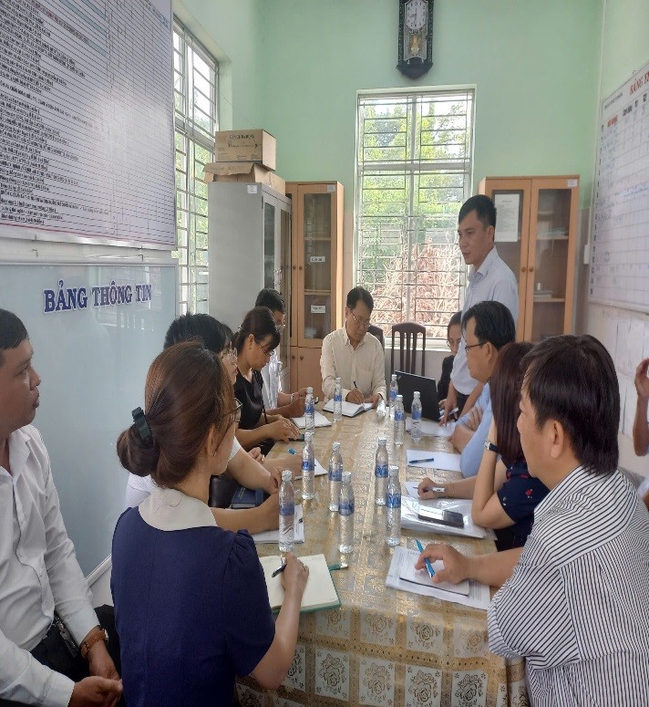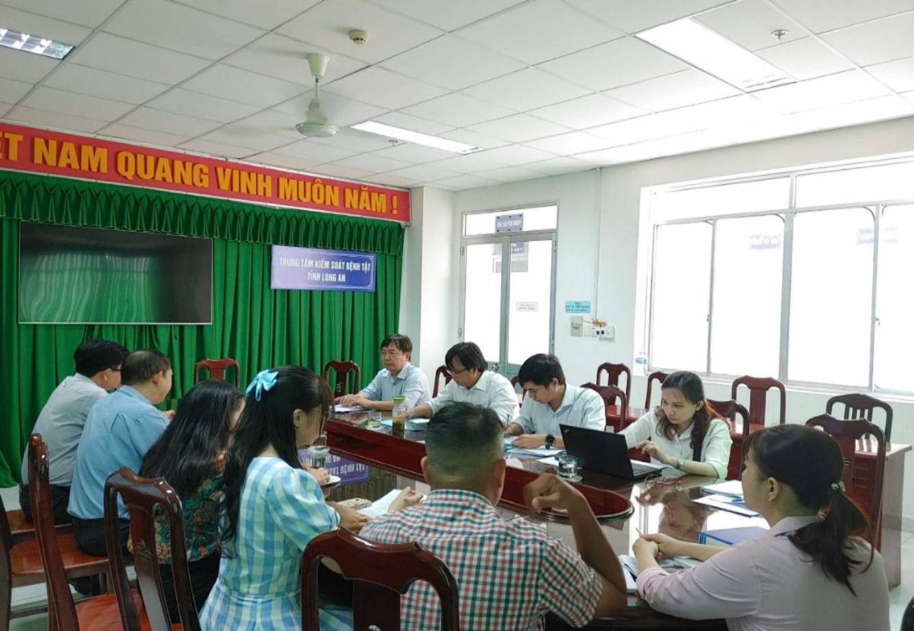 Đoàn công tác làm việc với Trung tâm KSBT tỉnh Long An, Trung tâm y tế huyện Tân Thạnh, Ban Phòng chống dịch bệnh và Trạm Y tế xã Kiến Bình.