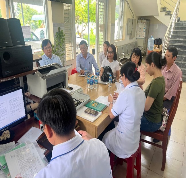 Đoàn công tác làm việc với Trung tâm KSBT tỉnh Hậu Giang, Trung tâm y tế huyện Vị Thuỷ, Ban Phòng chống dịch bệnh và Trạm Y tế xã Vị Thắng.