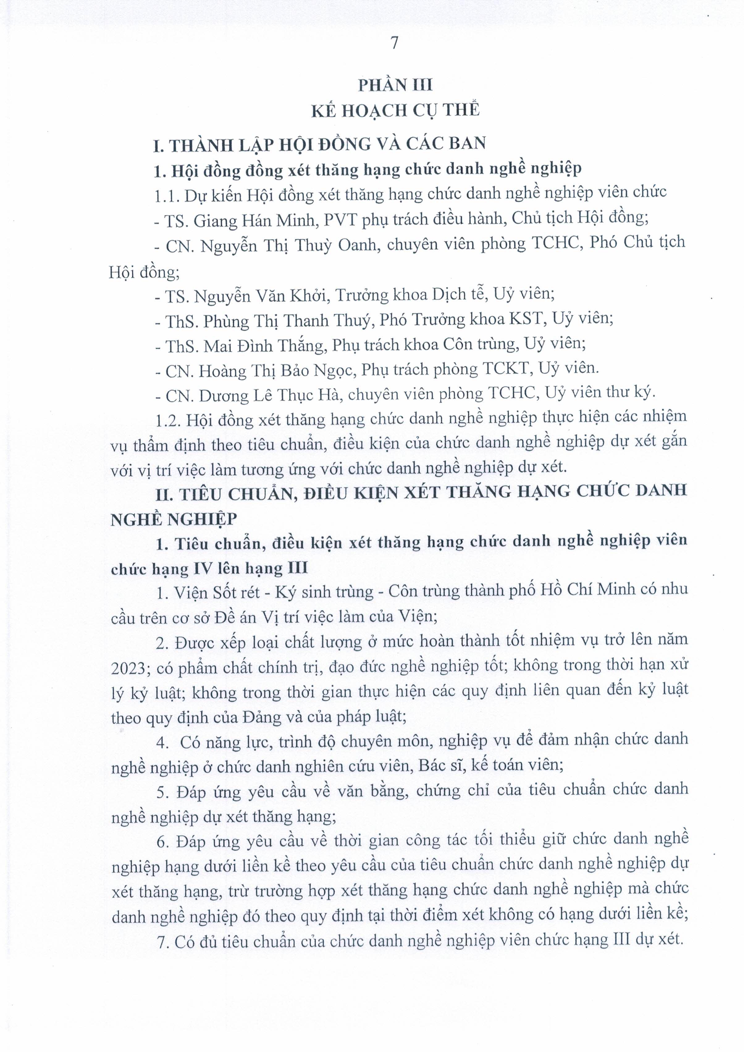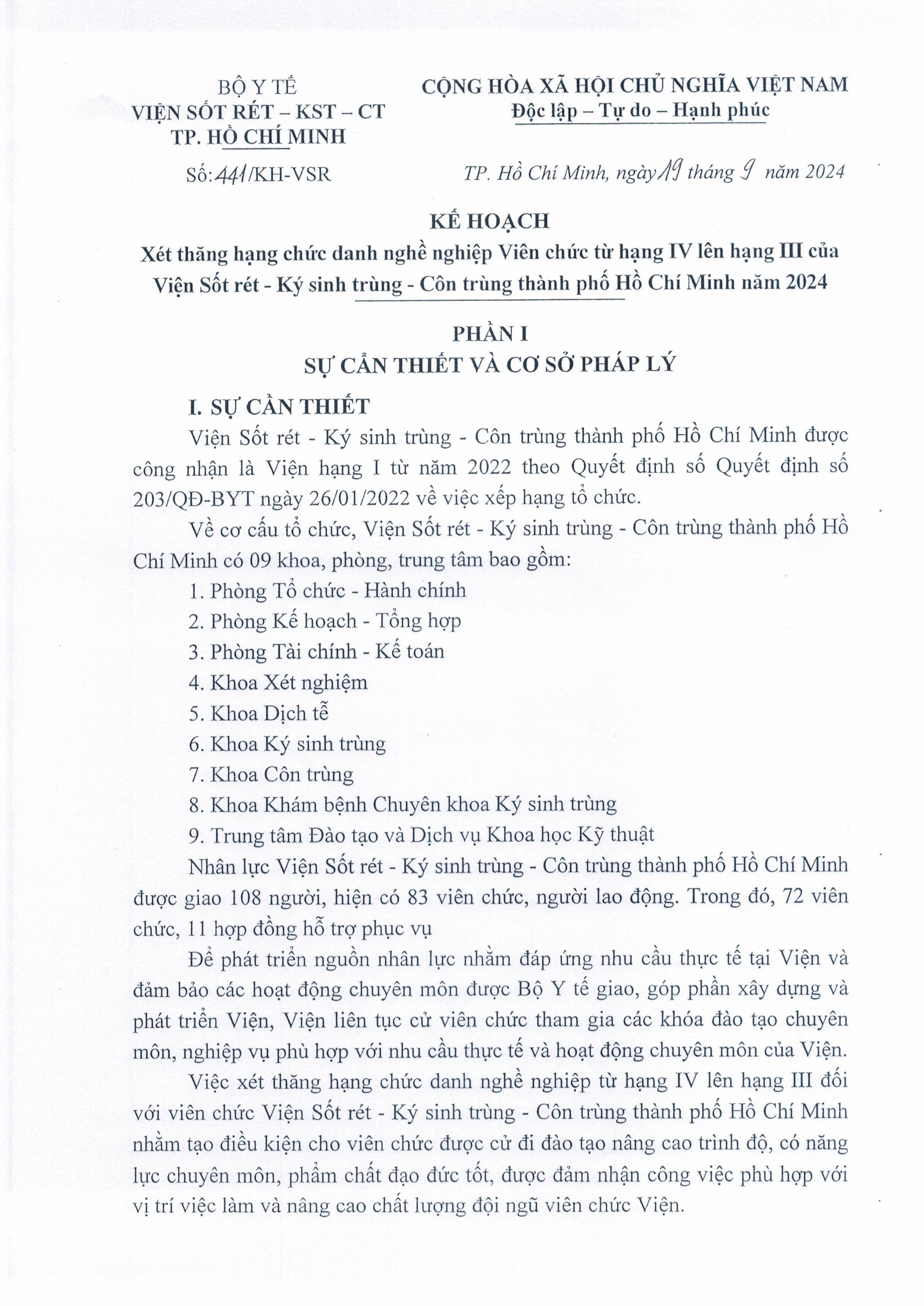 Kế hoạch xét thăng hạng chức danh nghề nghiệp Viên chức từ hạng IV lên hạng III Của Viện Sốt rét - KST - CT TP.HCM năm 2024