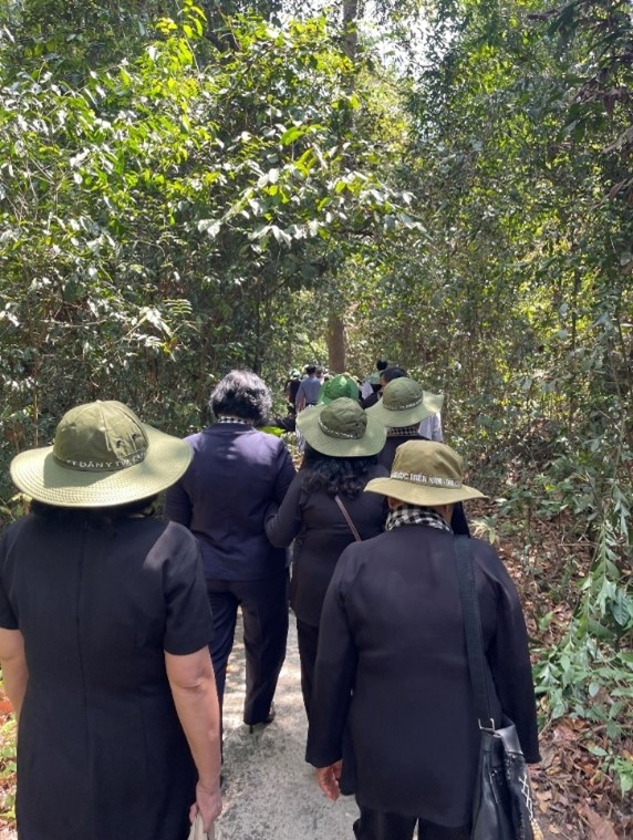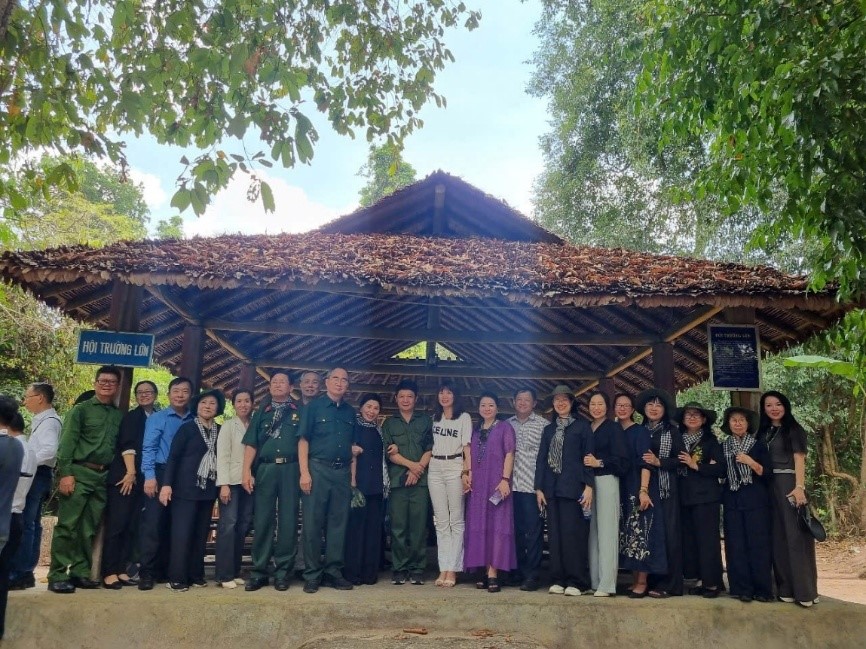Chụp hình lưu niệm tại Di tích lịch sử Ban dân Y Trung ương Cục miền Nam