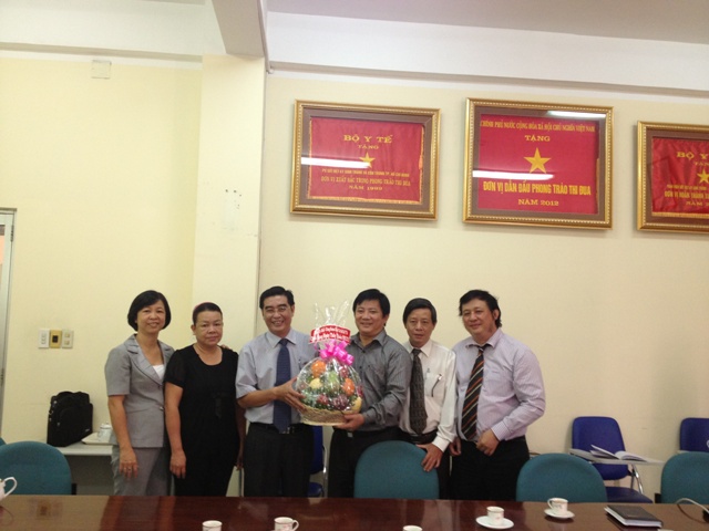 Nhân dịp này, Đảng ủy khối cơ sở Bộ Y tế cũng đến thăm, tặng quà và chúc mừng Viện Sốt rét - KST - CT Tp. Hồ Chí Minh, chúc toàn thể cán bộ, Viện, những người đã và đang công tác trong ngành y tế luôn luôn phát huy truyền thống vẻ vang của ngành “Thầy thuốc như mẹ hiền”. Hy vọng trong thời gian tới Viện tiếp tục phát huy truyền thống tốt đẹp, nỗ lực phấn đấu, đạt nhiều thành quả lớn lao hơn nữa trong sự nghiệp chăm sóc sức khỏe nhân dân… Viện trưởng Lê Thành Đồng thay mặt Viện cảm ơn sự quan tâm, giúp đỡ của Đảng ủy khối trong suốt thời gian qua. Thời gian tới Viện sẽ cố gắng phấn đấu để đạt được những thành tích cao trong sự nghiệp chăm sóc, bảo vệ sức khỏe nói chung và công tác PCSR, các bệnh ký sinh trùng nói riêng. Viện trưởng cũng gửi lời cảm ơn, chúc sức khỏe, hạnh phúc và lẵng hoa đến Đảng ủy khối.
