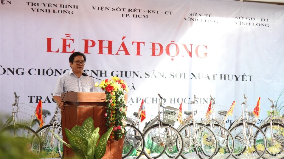 Tại buổi Lễ, PGS. TS. Lê Thành Đồng, Viện trưởng Viện Sốt rét - KST - CT TP.HCM đã phát biểu nêu bật tầm sự lưu hành phổ biến của bệnh giun sán, bệnh sốt xuất huyết, tình hình mắc và ảnh hưởng của bệnh đến sức khỏe, tính mạng của nhân dân; đồng thời ông cũng nêu rõ ý nghĩa của việc trao tặng xe đạp cho các em học sinh có hoàn cảnh khó khăn, các em hiếu học, việc lồng ghép giữa hoạt động tình nghĩa và truyền thông giáo dục sức khỏe phòng chống bệnh tật cho nhân dân sẽ mang lại hiệu quả thiết thực hơn nếu thay đổi các phương thức, cách tổ chức truyền thông.