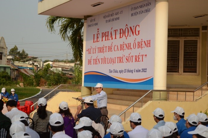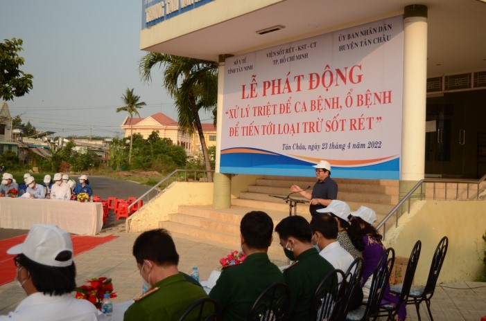 Hưởng ứng ngày thế giới phòng chống sốt rét 25/4/2022 được Tổ chức Y tế thế giới và các quốc gia thành viên quảng bá với chủ đề “Xử lý triệt để ca bệnh, ổ bệnh để tiến tới loại trừ sốt rét”, Viện Sốt rét - KST - CT TP.HCM đã phối hợp với Sở Y tế tỉnh Tây Ninh, Trung Tâm Kiểm soát bệnh tật tỉnh Tây Ninh, Uỷ ban nhân dân huyện Tân Châu tổ chức Lễ phát động hưởng ứng ngày thế giới phòng chống sốt rét năm 2022 tại Trung tâm văn hóa, thể thao và truyền thanh Huyện Tân Châu với sự tham gia của các đại biểu đến từ các ban ngành, đoàn thể của tỉnh Tây Ninh và huyện Tân Châu cùng 500 học sinh các trường THCS, THPT và nhân dân trên địa bàn huyện Tân Châu.