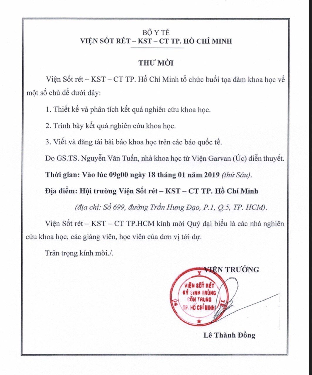 06:30 CH @ 22/01/2019Thư mời tham gia tọa đàm khoa học