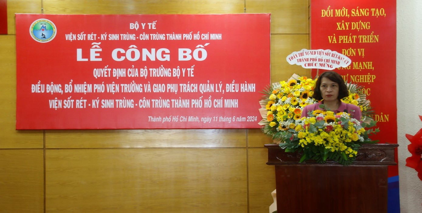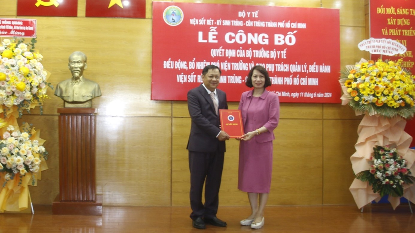 Chiều ngày 11/6/2024, tại Viện Sốt rét - Ký sinh trùng - Côn trùng Thành phố Hồ Chí Minh, Bộ Y tế tổ chức Lễ công bố, trao Quyết định bổ nhiệm Phó Viện trưởng và giao phụ trách quản lý, điều hành Viện Sốt rét - Ký sinh trùng - Côn trùng Thành phố Hồ Chí Minh.