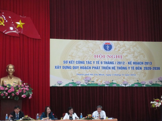 Ngày 02/11/2012 tại TP. Hồ Chí Minh, Bộ Y tế tổ chức Hội nghị sơ kết công tác y tế 9 tháng đầu năm 2012 - Kế hoạch năm 2013, Xây dựng Quy hoạch phát triển hệ thống y tế đến năm 2020 - 2030.