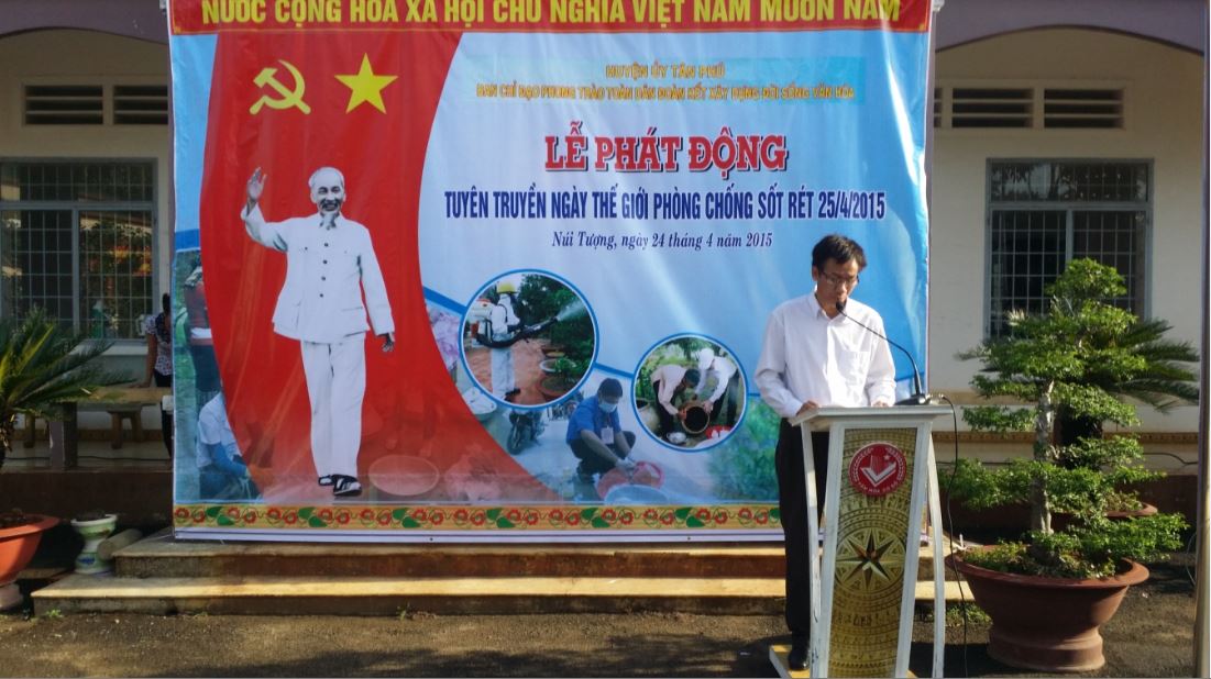 Nhằm nâng cao nhận thức và vận động cộng đồng tích cực tham gia phòng chống sốt rét ở địa phương, hưởng ứng Ngày Thế giới phòng chống sốt rét năm 2015, ngày 24/4/2015, tại xã Núi Tượng, huyện Tân Phú tỉnh Đồng Nai, Trung tâm Y tế dự phòng tỉnh Đồng Nai, Uỷ ban nhân dân huyện Tân Phú và ngành y tế huyện Tân Phú tổ chức Lễ mít tinh và diễu hành hưởng ứng Ngày Thế giới phòng chống sốt rét với chủ đề “Đầu tư cho tương lai, đánh bại sốt rét”.