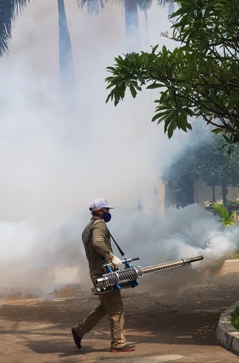 Hình 1. Phun mù nóng diệt muỗi tại làng SOS Gò Vấp