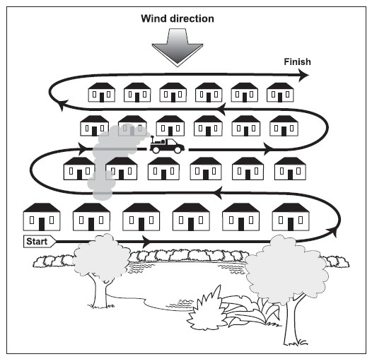 Cần lên kế hoạch trước về các lối đi để phun và có thể cần kết hợp các loại phương tiện phun khác nhau như để trên xe hơi, xe máy hoặc có thể phải đeo vai ở những khu vực khó tiếp cận, hạn chế phương tiện. Cần cân nhắc các vấn đề sau: