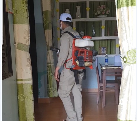 Hình 2. Phun ULV diệt muỗi trong nhà dân