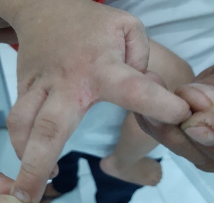 Sáng 16/11/2020, anh LHA ở Xã Suối Nghệ, Huyện Châu Đức, Tỉnh Bà Rịa - Vũng Tàu dẫn theo 2 trẻ nhỏ đến Phòng khám chuyên khoa Ký sinh trùng của Viện Ký sinh trùng – Côn trùng để khám và điều trị bệnh. Qua thăm khám lâm sàng, các bác sĩ phát hiện trên da tay, chân các cháu có nhiều mụn nước, vết loét và bị ngứa. Anh A nói 2 bé có các biểu hiện này cách nay 4 - 5 tháng, anh đã đưa các cháu bé đi nhiều nơi để khám và điều trị nhưng các biểu hiện trên không giảm.
